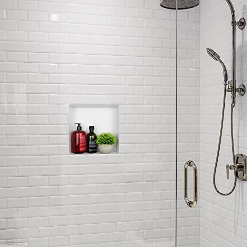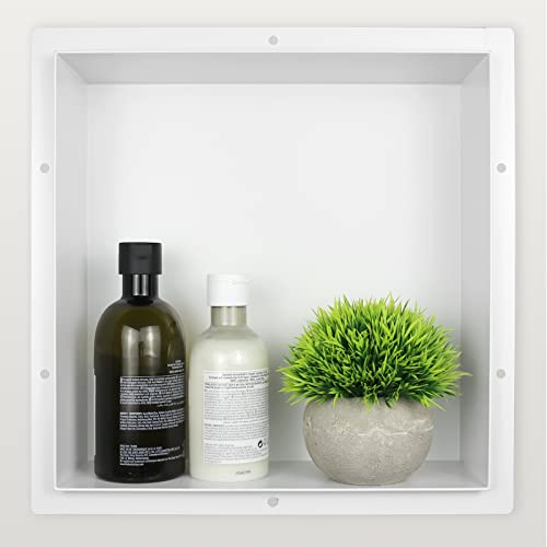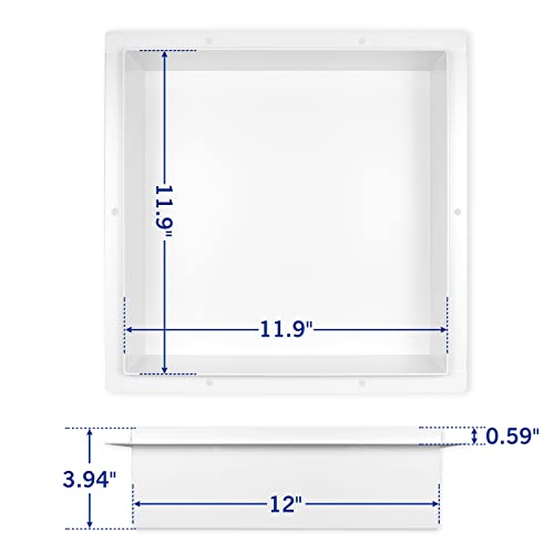 - 【Dimensions】 Stainless shower niche white. Size: 12" Width x 12" Height x 3.94" Depth. 100% leak-free and waterproof. Shower niche rimless means flange is under tiles, where flange is invisible ( Photo 2).