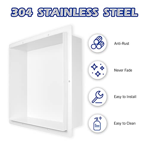 - 【Multi-Purpose Storage】 Stainless steel shower niche allows easy access to all your essentials. Save time tidying up and cleaning up. Perfect storage for bathroom, kitchen, living room, ladies' room, toilet, coffee bar etc.