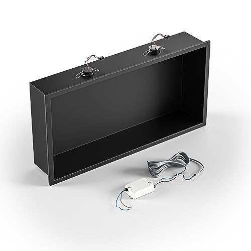 - Stainless shower niche black with Round LED light. Size: 3.94" Width x 12" Height x 36" Length. Can be installed horizontally . 100% leak-free and waterproof. 3000K soft warm light.3 pieces of round LED lights included.