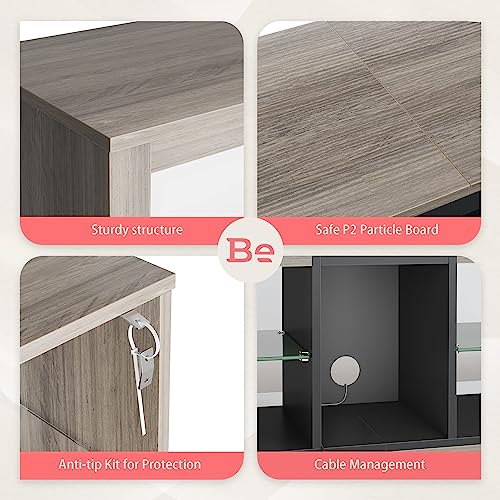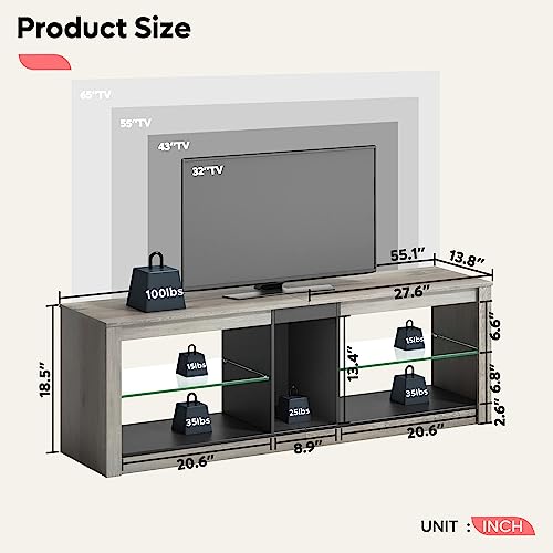 - 【LED TV Stand Cabinet】LED Ambient lights with 7 main colors and 22 flashing modes, with remote ON/OFF and color control, create wonderful atmosphere.