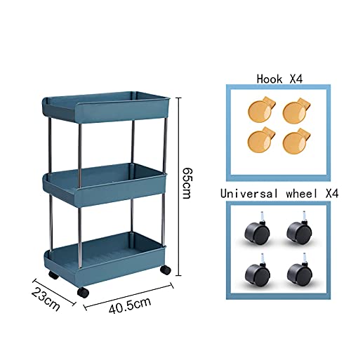 BETTER ANGEL XING 3 Tier Slim Storage Cart Mobile Shelving Unit Organizer Slide Out Storage Rolling Utility Cart Tower Rack For Kitchen Bathroom