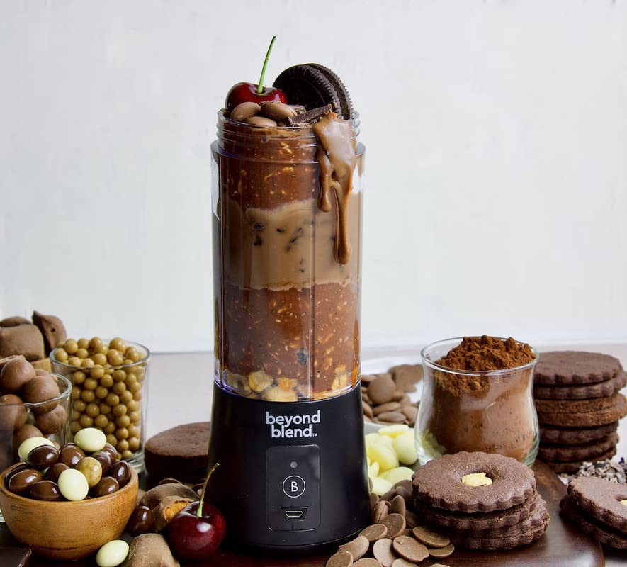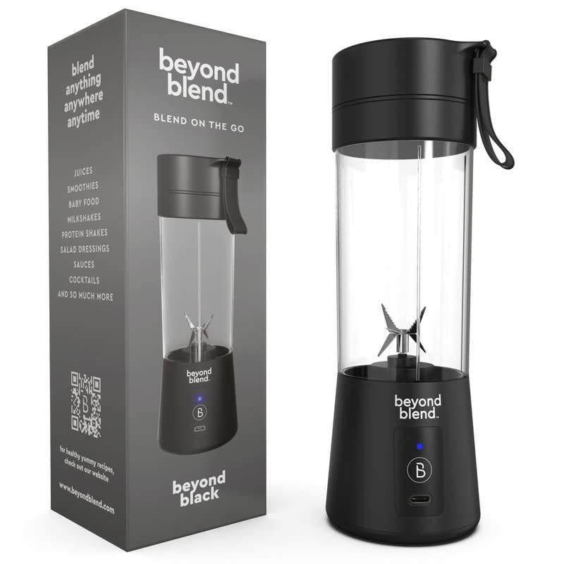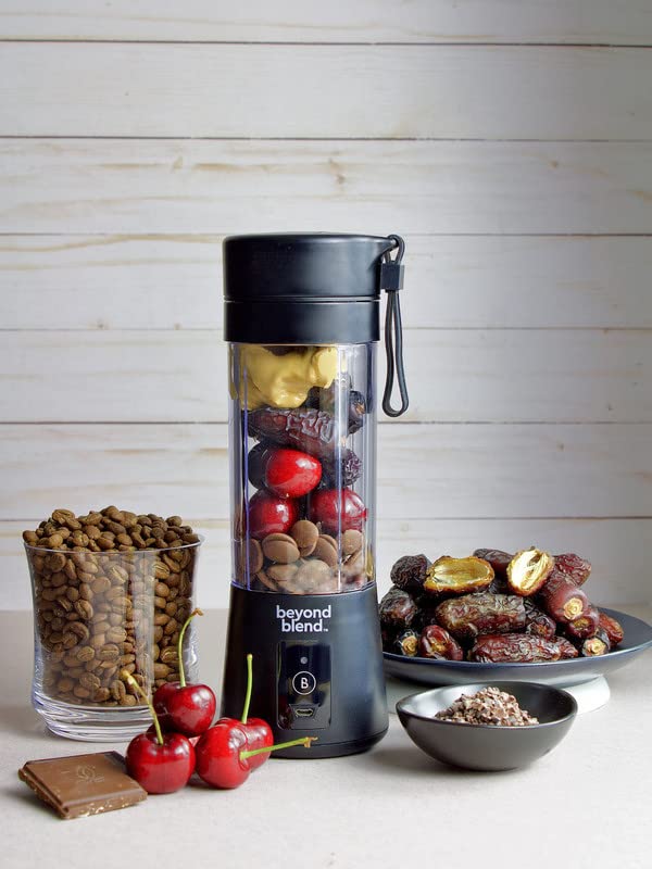 • 🥤Mighty Mini Blender: Beyond Blend stylish and compact smoothie blender designed and developed in UK has an electric motor that spins its six point steel blades at 22000 RPM smoothly without any noise and this juicer blender fits in any bag easily