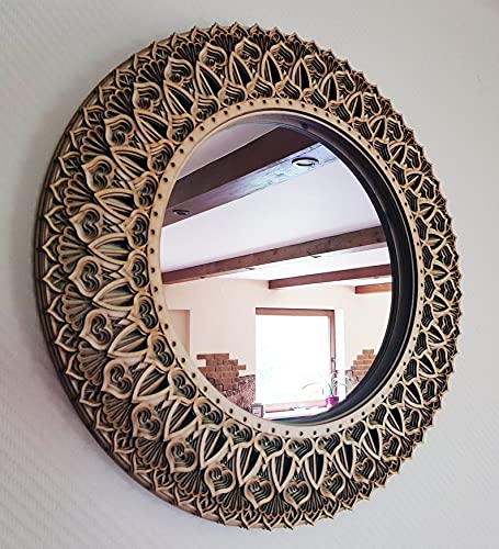 BHDecor Mirror Home Wall Decor – Multilayered Laser Cut Carved Frame Elegant Wooden Mandala Hanging MDF Panels for Decoration - Rustic Handmade C