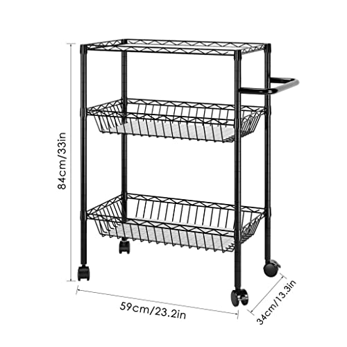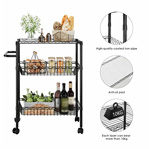BHVXW 3 Tier Kitchen Trolley Rolling Storage Cart Serving Trolley With Handle Black Iron Bathroom Shelf