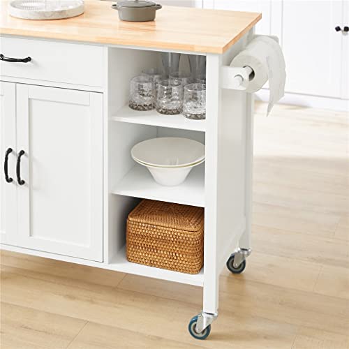 BHVXW Design Kitchen Trolley with Worktop Kitchen Island Kitchen Cabinet Trolley Sideboard on Wheels White Natural