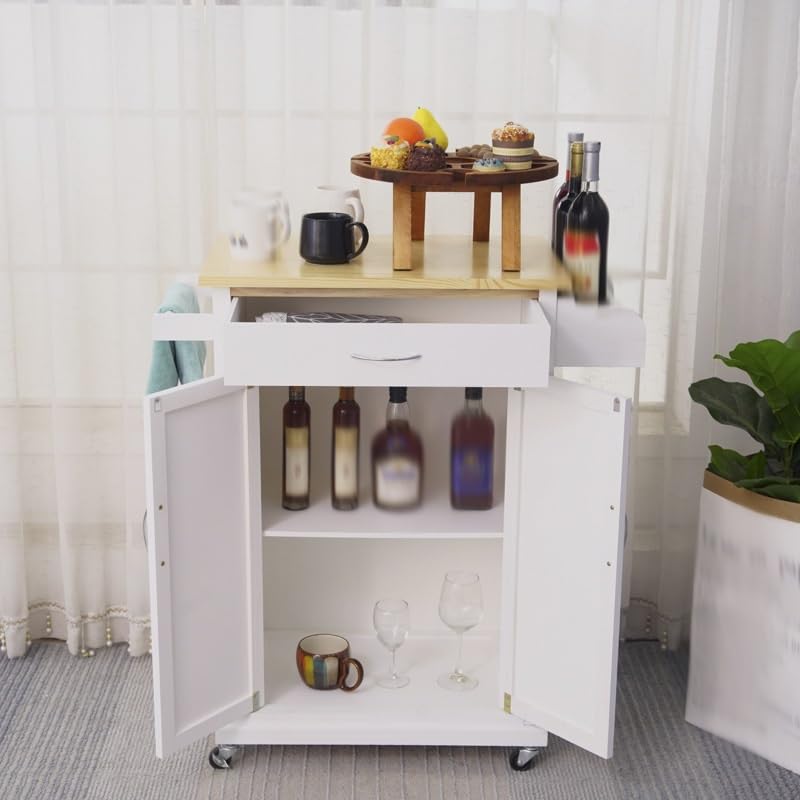 - Material :Our kitchen island is made of solidwood board and sturdy structure for longer using. The tabletop offers you an ample platform to cook or operate. Smooth surface for easy cleaning. The installation is and direct, all tools needed will be provided.