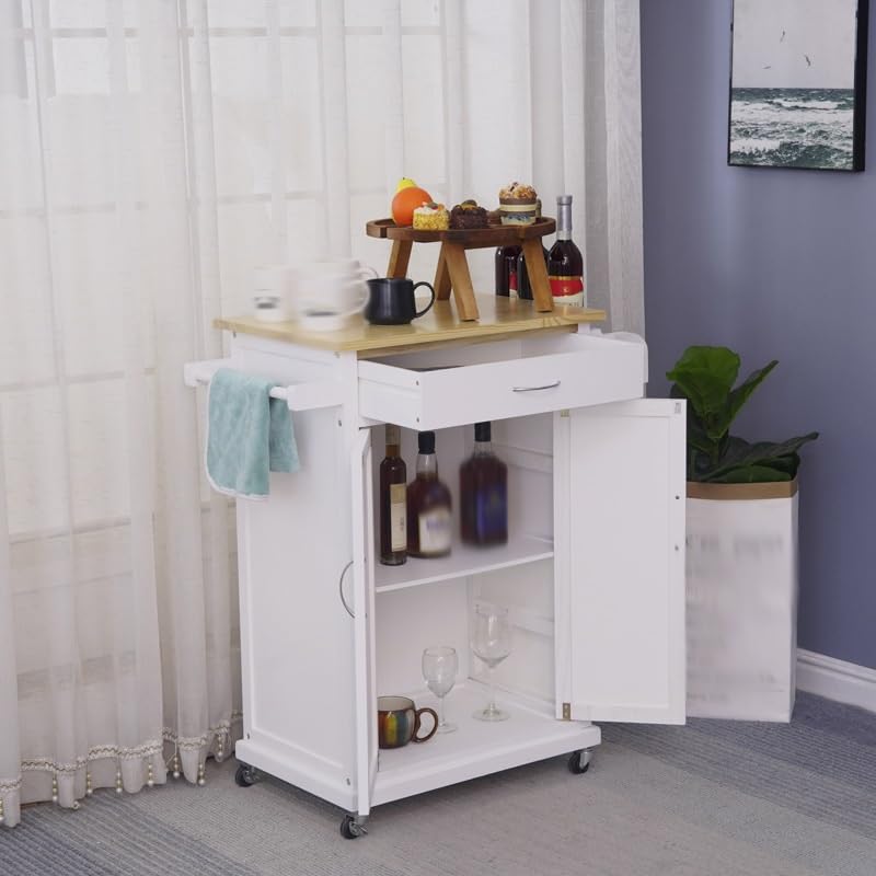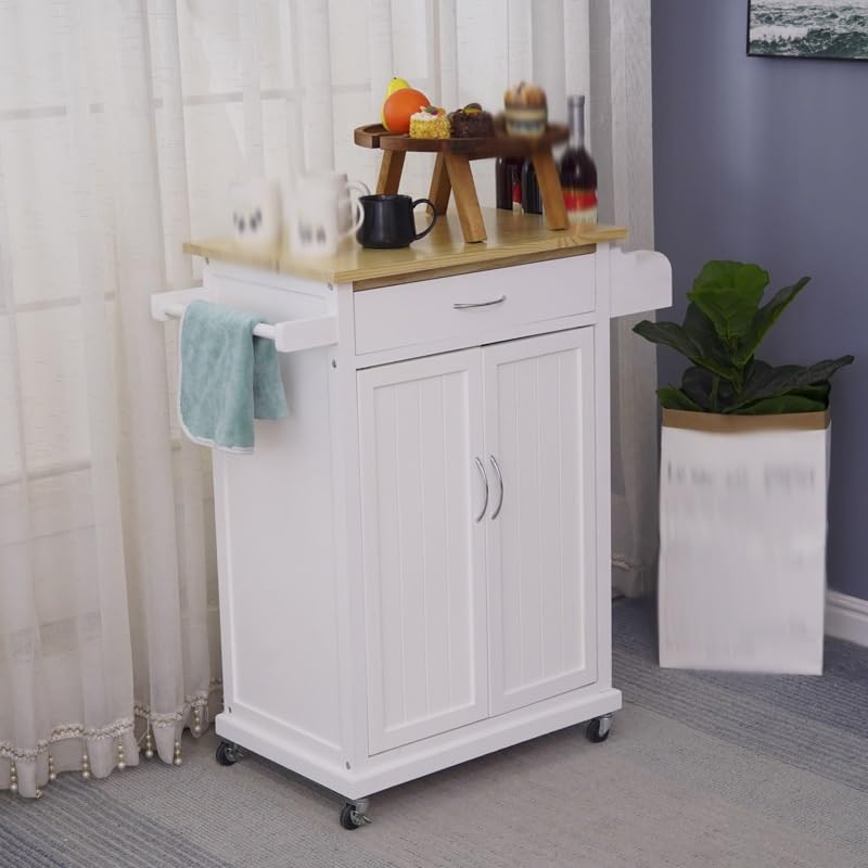 - Moving Freely: The bottom of the mobile kitchen cart has 4 silent universal wheels( 2 with brakes), can play a fixed location, and with this towel rack design, push and pull flexibly. It wheels around pretty easily, so you can move it as needed to clean floor.