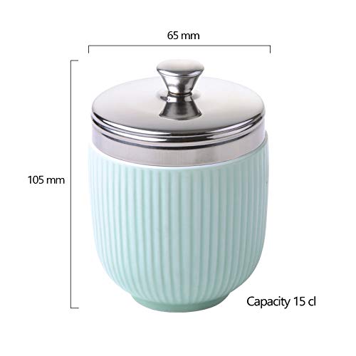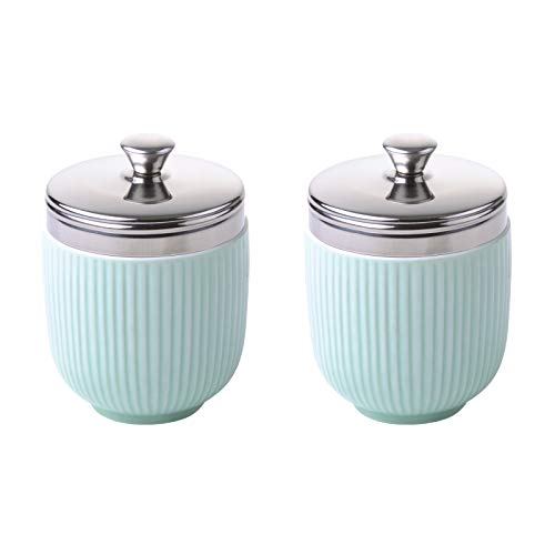 Home Small Appliances BIA International – Porcelain Egg Coddler – Set of 2 Celadon Green Egg Poachers with an Embossed Fluted Design, Kitchen Utensil and Egg Multi Coo