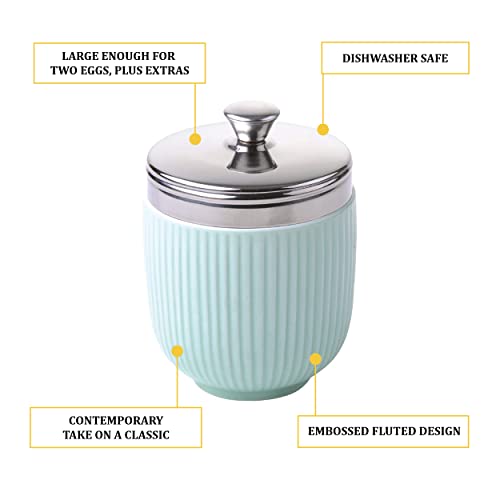BIA International - Porcelain Egg Coddler - Set of 2 Celadon Green Egg Poachers with an Embossed Fluted Design, Kitchen Utensil and Egg Multi Coo
