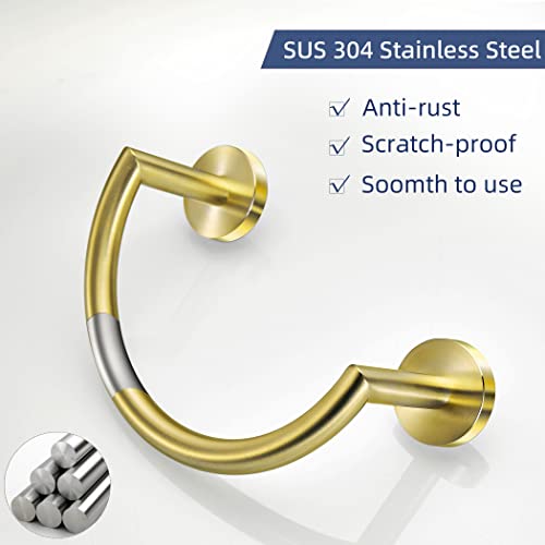 - 【RUST-PROOF&DURABLE】:Our brushed gold towel ring is made of 100% SUS304 stainless steel and secure with double base, which is corrosion-resistant&rust-proof while being durable&sturdy