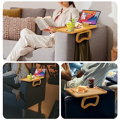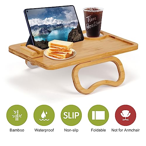- NATURAL BAMBOO MATERIAL: Our Sofa Arm Tray Table is made of 100% natural bamboo which is eco-friendly, stronger, larger, and more stable than regular particle board couch tray. The strong stainless clamp to grip the arm of your couch and keep your Couch Arm Tray firmly in place