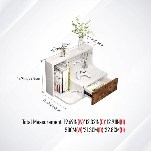 - [Sturdy & Durable] The wall mounted bedside cabinets is constructed of premium plywood and heavy-duty metal hardware, equipped with strong metal drawer slides and anti-drop fittings for smooth and safe pulling with good sturdiness and durability.