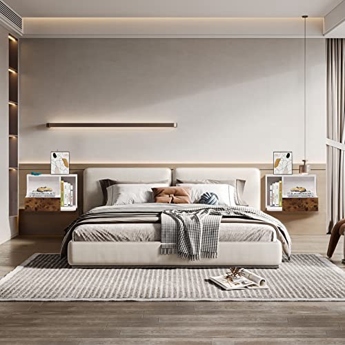 - [Space Saving] Floating bedside table can not only saves your space, but also facilitate you to clean the floor, making the room clean and tidy. The compact design fits easily in narrow nooks and small spaces like the sofa side.