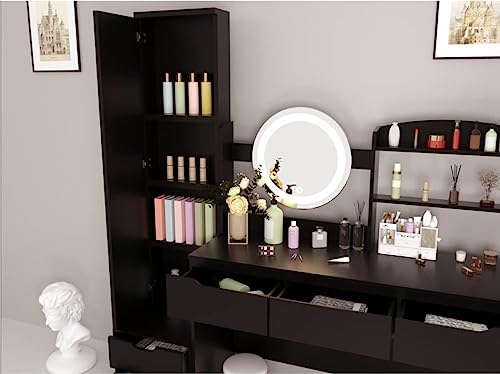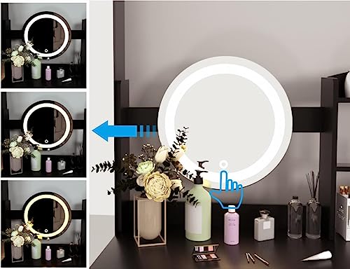 - Vanity Mirror lights table set Large mirror with Three colors adjustable LED light strip, provide more bright but soft & adjustable lights, a beauty station to start a nice day.A collection of full-length mirrors and storage.