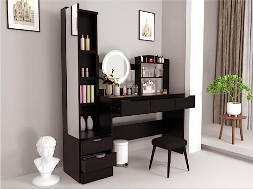 - Durable Material & Years Use MDF board wooden vanity, 12mm thickness mirror frame, ensure the vanity sturdy enough. Perfect Size for Bedroom: 51.2x15.74x63in.