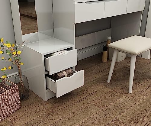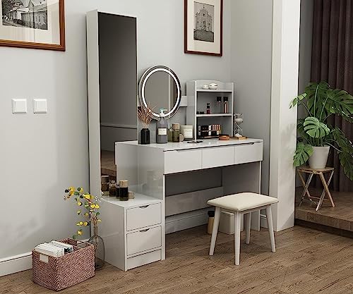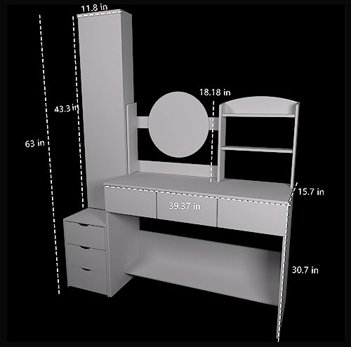 - 【Large Storage Capacity】5 Drawers , your cosmetic, jewelry, and other beauty supplies will always easy to find their place. (Stools not included / just display).Full-length mirror doors can be opened with extra storage space inside.(And the high mirror cabinet with drawers can be placed on the left and right according to your needs)