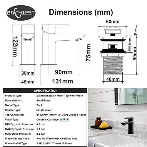 - ✦POP UP BASIN WASTE: Brass core, chrome finish, suitable for the basin with overflow hole.