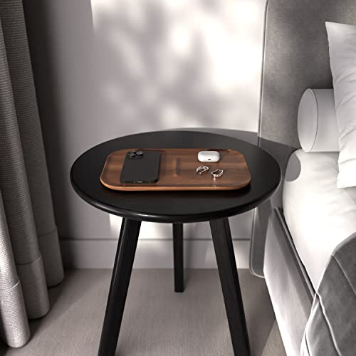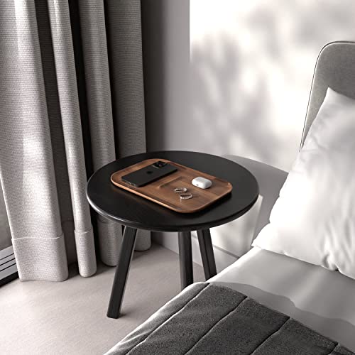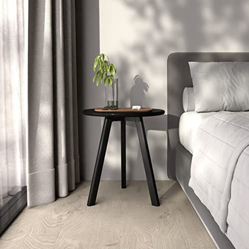 Home Living Room Furniture Black Side Table Round Occasional Table Minimal Scandinavian End Table for Living Room Sofa Table 100% Solid Wood (Black Oak)