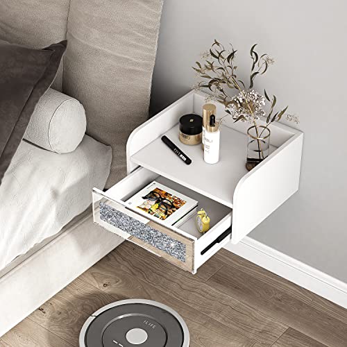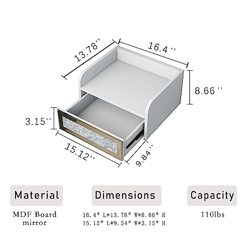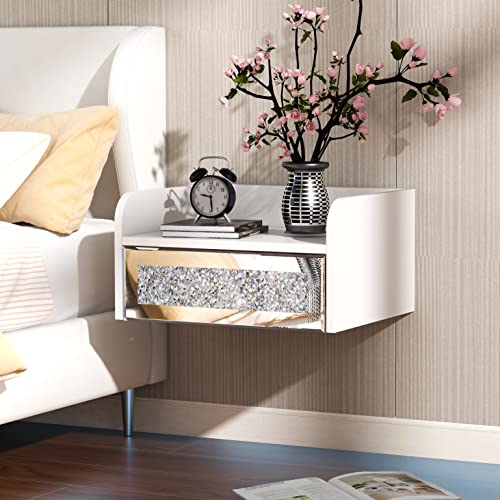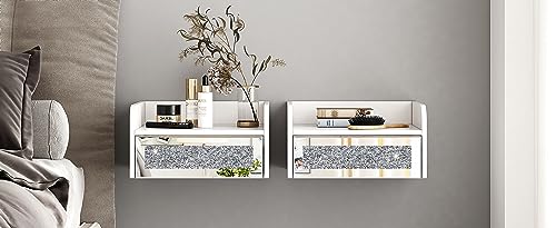 - Sleek and modern look: The floating bedside table is designed with mirrored Crushed Diamond to add a touch of luxury to the room.