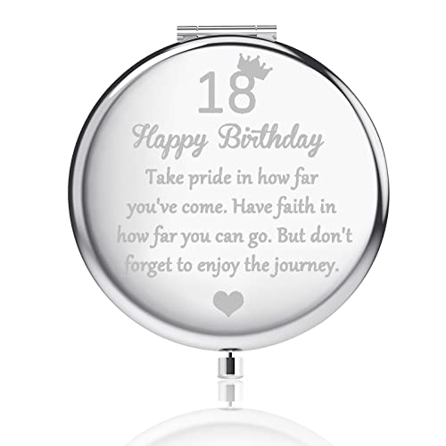 - Happy 18 birthday gift ideas for her present turning 18 gifts unique hand-held folding mirror engraved with inspiration quote 18th birthday mirror compact gifts 18 birthday 2 sided small mirror for handbag purse.