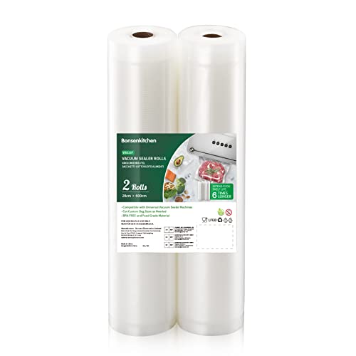 - 【Customized-size Food Vaccum Saver Bags】 Bonsenkitchen vacuum sealer roll is compatible with all major brand vacuum sealers, you can make a customized-size vacuum bag in a few seconds. It is better to use bonsenkitchen professional vacuum bag with deep airway and good sealing effect