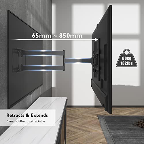 - Space-saving: The wall mount can be extended to a maximum of 850mm, and be retracted to a distance of only 65mm away from the wall, saving your valuable space; 1.8m HDMI cable and 5 cable ties included, which gives a neat appearance to your household.