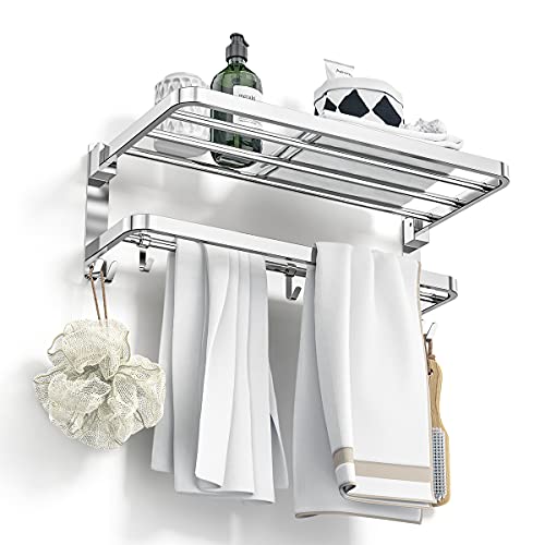 Booxihome Towel Rack, Stainless Steel Towel Rail with Double Towel Shelf for Bathroom, Wall-Mounted Shower Shelf Organizer 37cm(14.5 inch)