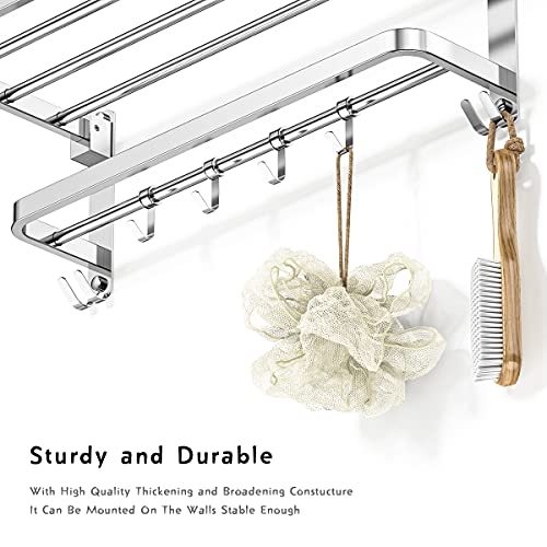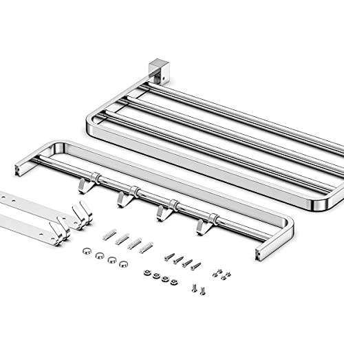 💕DOUBLE TOWEL Rack FOR BATHROOM: This towel rack is rustproof, sturdy and durable with modern look.Double towel shelf designed, 37 CM long, with 6 hooks for storing and drying your towels.