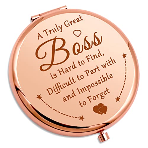 - Boss Gifts For Women- Personal Makeup Mirror engraved with 'A Truly Great Boss is Hard to Find,Difficult to Part with and Impossible to Forget'.If you have a good leader who has given you guidance, support, encouragement, leadership with great patience during your tough working or studying times? So giving this meaningful charm to your boss, leader which reminds her that she’s appreciated.What a simple yet meaningful team building gifts