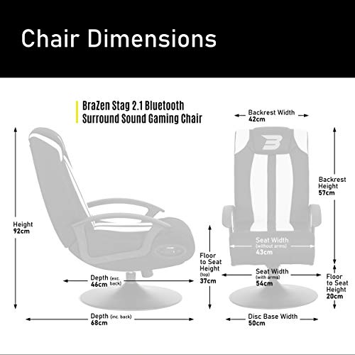- British Designed for Unmatched Comfort and Durability: The Brazen Stag Ergonomic Video Rocker Pedestal Bluetooth Speaker Chair is superbly UK designed ergonomic gaming chair for comfort with kids teenagers and small adults in mind and engineered to be durable. It comes with PU leather padded seat and fixed armrest, disc base for maximum support and can accommodate up to approx 80KG load