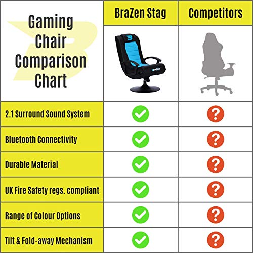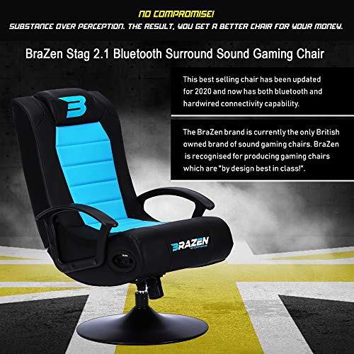 - 100% Satisfaction Guarantee: We know you'll love the BraZen Stag ergonomic video rocker pedestal speaker sound bluetoth kids children gaming chair. It comes with a manufacturer's warranty invite and great aftercare. BraZen Technical Support have the highest rating of any gaming chair brand on Trustpilot for quality aftersales service