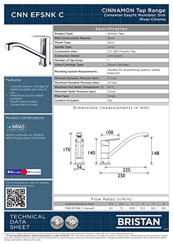 - Premium Quality: Bristan is UK's largest taps and showers brand; superior chrome finish and high quality components; approved to UK water regulations