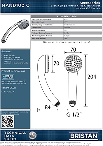 - Suitable for all shower hoses from the Bristan range with the inlet connection of G1/2 inch