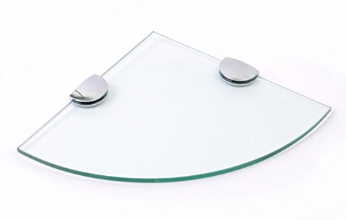 Home Bathroom Furniture BSM Marketing 200mm (7.8″) 6mm Thick Toughened Glass Corner Shelf Bathroom Bedroom Kitchen with Large Chrome Supports (Clear)
