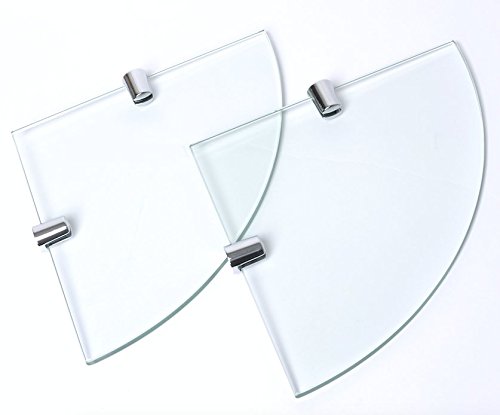 BSM Marketing Set of Two Clear 150mm (7" Approx) 6mm Thickness Toughened Glass Corner Shelves for Bathroom Bedroom Office with Chrome Finish Shel