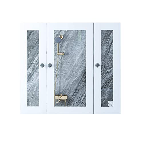 - SPACE-SAVING SOLUTION: 3 mirror doors divide the cabinet into individual space. There are 3-layer shelf in the middle, while 2 on both sides. The storage compartment enables you to properly store your personal belongings, and the storage compartment is convenient for storing other daily necessities. Wall cabinet allows you to easily store items without sacrificing floor space. The exquisite glass door design is super reflective and convenient to use.