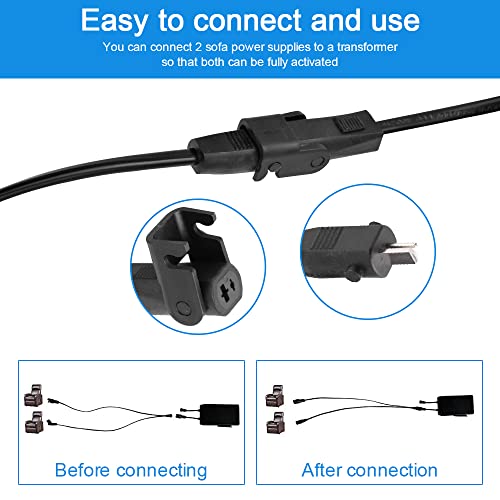 - 🔌【Can Work with Two Sofa Chairs】:The sofa splitter can connect 2 sofa power sources to a transformer, so that both can be fully started, and provide circuit work for the two sofas at the same time, you only need to plug in the power when using it.