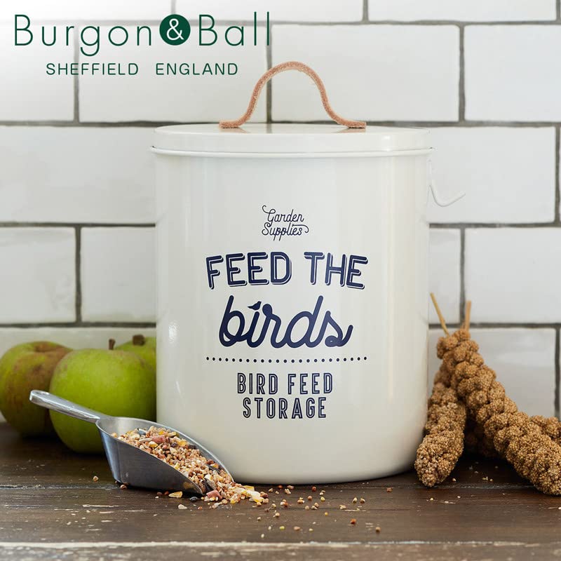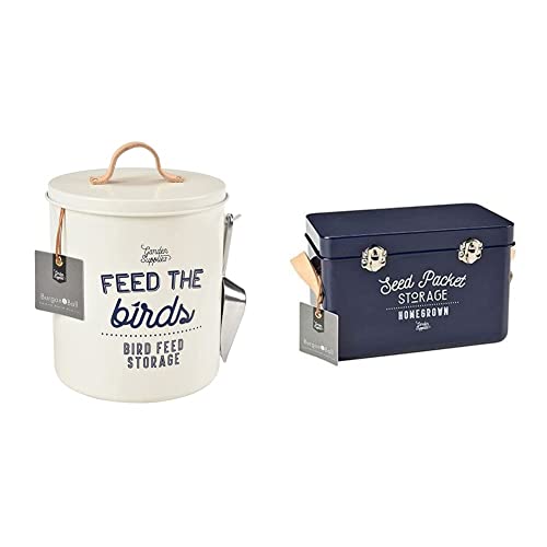 From the manufacturer Burgon & Ball Tin Bird Food Storage, 25 cm Height x 18 cm Diameter, Stone Cream Burgon & Ball Tin Bird Food Storage is perfect for storing your birdseed and effectively protects it from vermin. Fits perfectly under your arm, making it the ideal companion when feeding your feathered garden visitors. Stylish design with pretty writing and fine leather details makes this tin a real eye-catcher and much too good to simply disappear in a cupboard. The handy little scoop is perfect for portioning the feed and is conveniently stored on the side of the can. Brand Burgon & Ball Color Stone Cream Material Tin Number Of Sets 1 Burgon & Ball Leather Handled Seed Packets Storage Tin, Atlantic Blue Burgon & Ball beautifully-designed storage tin is perfect for collecting, storing and organising your seed packets. This handsome storage tin has been designed to look extremely stylish in home or shed. On-trend typography and natural leather handles at either side give this tin a really distinctive look. Elegant curves have been created by a unique moulding process, for a flawless, seam-free finish. The result is irresistibly tactile, with a very contemporary feel. Gorgeous as it is, this storage tin is extremely practical, too. Two strong metal clasps hold the hinged lid securely shut, and inside there are three separate compartments to help organise your collection of garden treasures. One compartment even runs lengthways, giving a home to even the very largest seed packets. Brand Burgon & Ball Color Atlantic Blue Material Metal Special Feature Lockable Style Garden