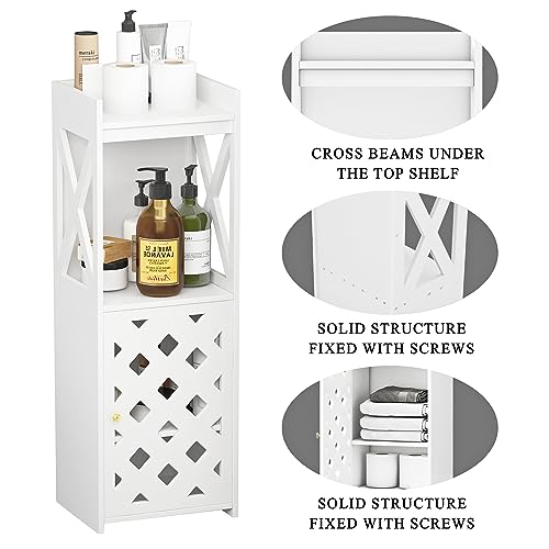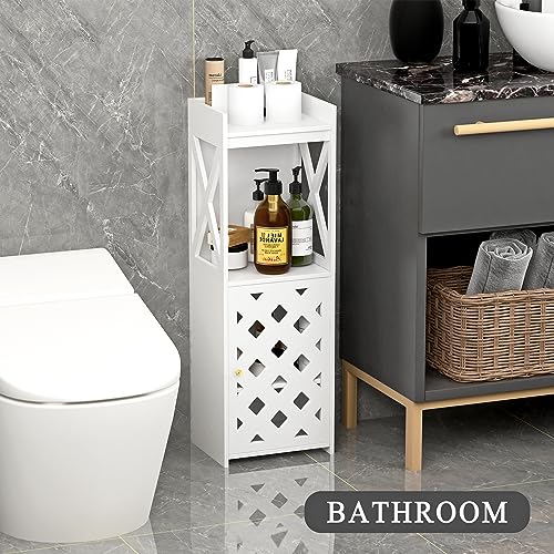 - 【Versatile and Multi-Functional】This small bathroom storage cabinet is designed to be versatile, offering endless possibilities for use in your home. Use it as a nightstand in your bedroom, an narrow side table for holding small objects in the living room, a bookshelf in your study, or even as a storage unit for toilet paper, cosmetics, and more in your bathroom.