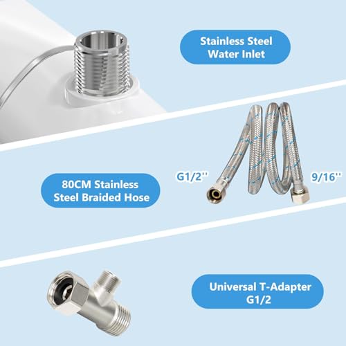 - 💦【NO LEAKAGE】- Unlike the cheap plastic inlet of other products, BYRISON Toilet bidet is uniquely equipped with a durable, high-quality brass inlet that will stay with you for a long time. The 80CM stainless steel hose and the standard G1/2 brass T-adapter make the whole connection more tight. If the hose is not long enough when you install it, please contact us, we have spare 2m hose available.