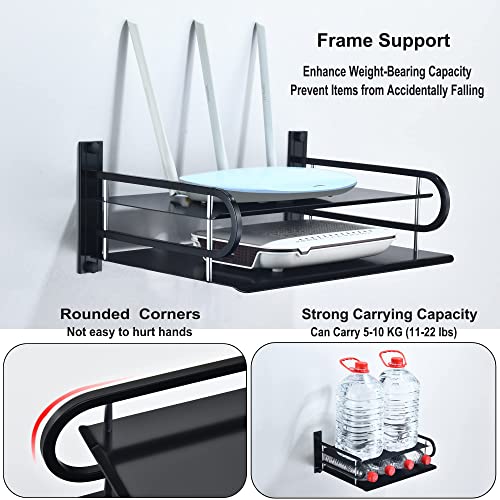 • GUARDRAIL DESIGN: The wall mounted projector bracket adopts a frame guardrail design, which increases the carrying capacity of the floating shelf and prevents items on the shelf from accidentally falling.