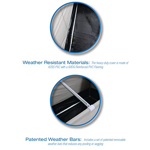 - Weather Resistant Materials: The heavy-duty cover is made of 420D PVC with a 600G Reinforced PVC Flooring