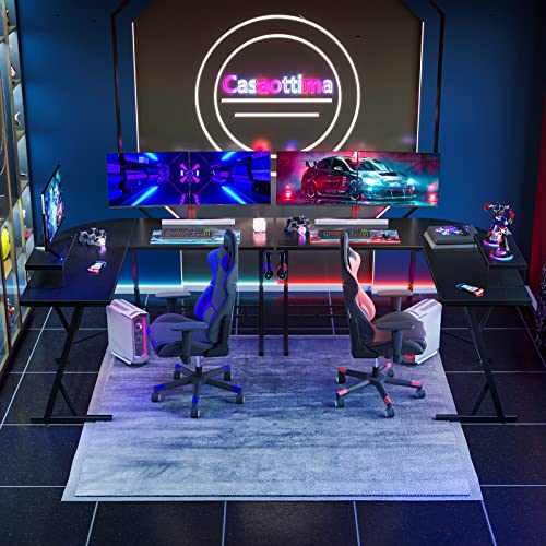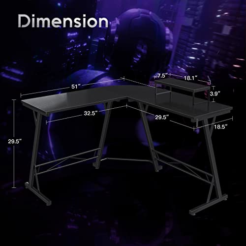 - [Spacious Working Space]:This L Shaped desk is equipped with a monitor stand and an iron hook to extend the desktop space. You will enjoy a spacious operating space for studying, working and Gaming.