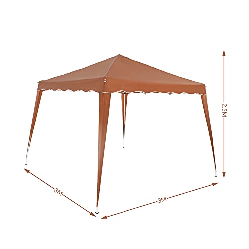Product Description Enjoy your home with Casaria! GARDEN FURNITURE AND MORE - CREATE A PARADISE Choose from a variety of styles and colours to find the perfect set for your outdoor space. Whether you're looking for a classic wooden set or something more modern. What are you waiting for? Browse our huge range now! Casaria 3 x 3m Capri Water Resistant Gazebo Spend sociable hours in the garden With the Capri party tent, you can enjoy social hours with friends and family in the garden. With its dimensions of 3 x 3 m, the gazebo offers the necessary space for you and your guests. Thanks to the practical folding system, the gazebo can be completely assembled within a few minutes, just the thing for spontaneous occasions in the countryside. Product Details: UV protection +50 Waterproof roof canopy Pop-up function Metal brace Practical Pop-Up function The practical pop-up function allows the gazebo to be set up quickly and easily, without tools. It is perfect for gatherings with friends, events, parties, etc.... It also comes with a transport bag. It is easy to transport thanks to the included bag. It is the ideal companion for your trips and allows you to save space when storing it. Stable The feet can be anchored, which gives the stability you need. The gazebo is easy to secure with the included tension ropes and stakes. The steel structure ensures even more stability. By this, the gazebo is easy to set up in the garden Robust construction The metal structure ensures stability for your outdoor events. The pop-up system saves you the hassle of assembling roof struts. The practical red button makes it easy to mount and dismount Water resistant The roof cover is made of waterproof 220D Oxford material with UV50+ protection: The feet are waterproof. With its dimensions of 3x3m and a surface area of 9m², you will be protected from the sun. Practical Pop-Up function Stable Robust construction Water resistant Height Adjustable Legs With the easy push button possitioning, the Garden Gazebo can height can be effortlessly adjusted in height. Choose between: 155 cm165 cm169 cm Technical Specifications: Height: 2.5mFloor area: 3 x 3 mCovered roof area: 2.6 x 2.6Colour: Light BrownCover Material: 100% PolyesterFrame Material: Metal Includes : 1 pavilion, 8x stakes, tension ropes, mounting material