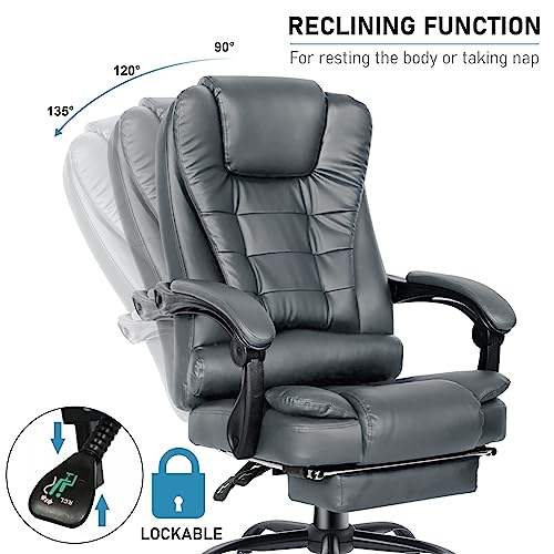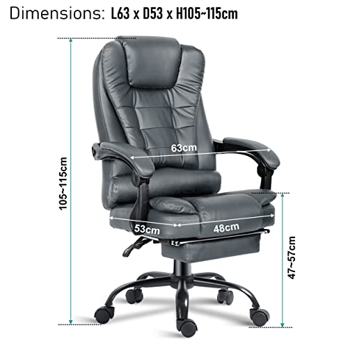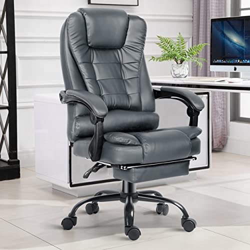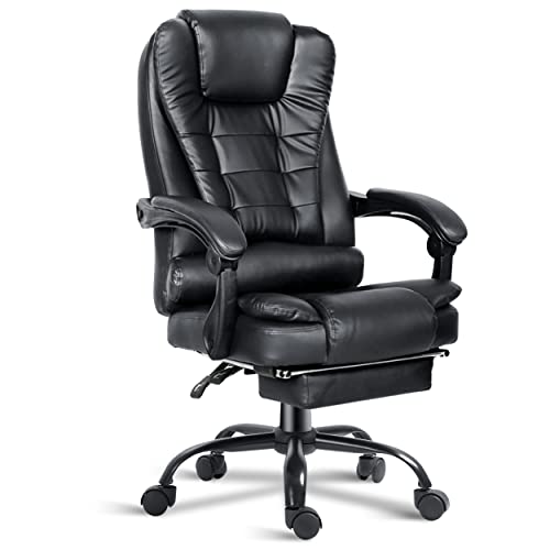 - [ HIGH-QUALITY MATERIAL ] The Recliner office chair is made of PU leather which is sturdy and durable, thick and firm, easy to clean and maintain, Heavy-duty base and nylon smooth-rolling casters for great stability and mobility.