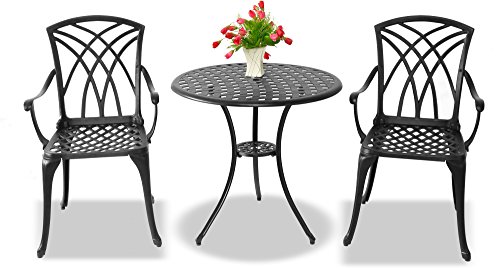 - The Oshowa is a 3-piece bistro set featuring 2-high backed large chairs with armrests and a matching table. It promotes a French influenced design, with weave pattern chairs, detailed weave pattern table top, and stylish legs. It comes complete with a central hole for the placement of an umbrella or parasol.