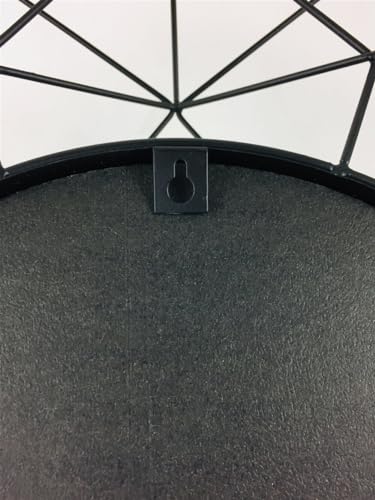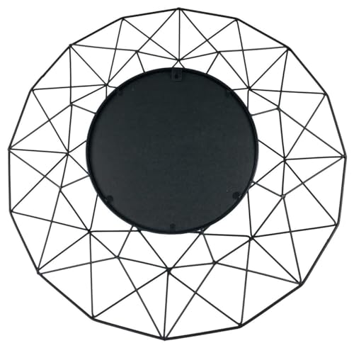 - This mirror utilises geometric patterns to create its overall unique wire design. A stylish addition to any home display! The mirror is made out of a robust iron. There is a bracket on the back for easy wall mounting. Measurements: W64cm x D9cm x H63cm. The mirror diameter is 28cm.