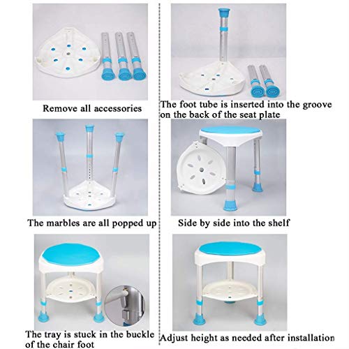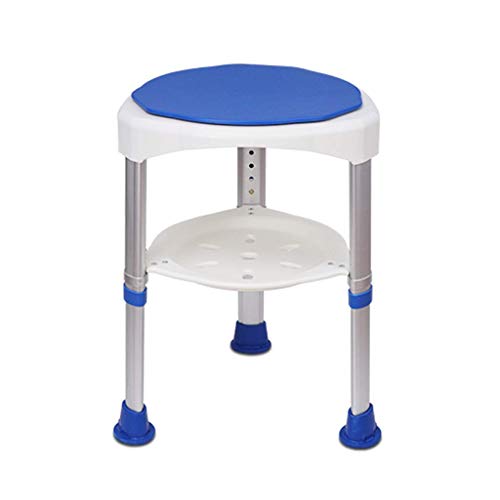 Home Furniture CHEWO Bath Stools,Round Shower Stool Bath Stool with Padded Rotating Adjustable Legs Blue Non-Slip Seat Bath Bench Lightweight with Storage Shelf