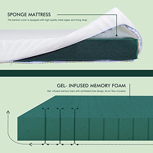 • DESIGN OF MATTRESS: Ventilation holes on the foam pad are designed to increase air permeability and take away excess heat. The texture of 100% washable bamboo cover is delicate, while the three-dimensional holes at the bottom increase air flow.