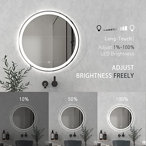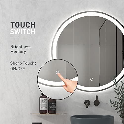 - Customizable Lighting: Illuminate your bathroom with our 32-inch round mirror featuring front and back LED lighting with a color temperature of 6500K, perfect for makeup application and shaving. Adjust the brightness with a simple 3-second press and enjoy the convenience of the brightness memory function.